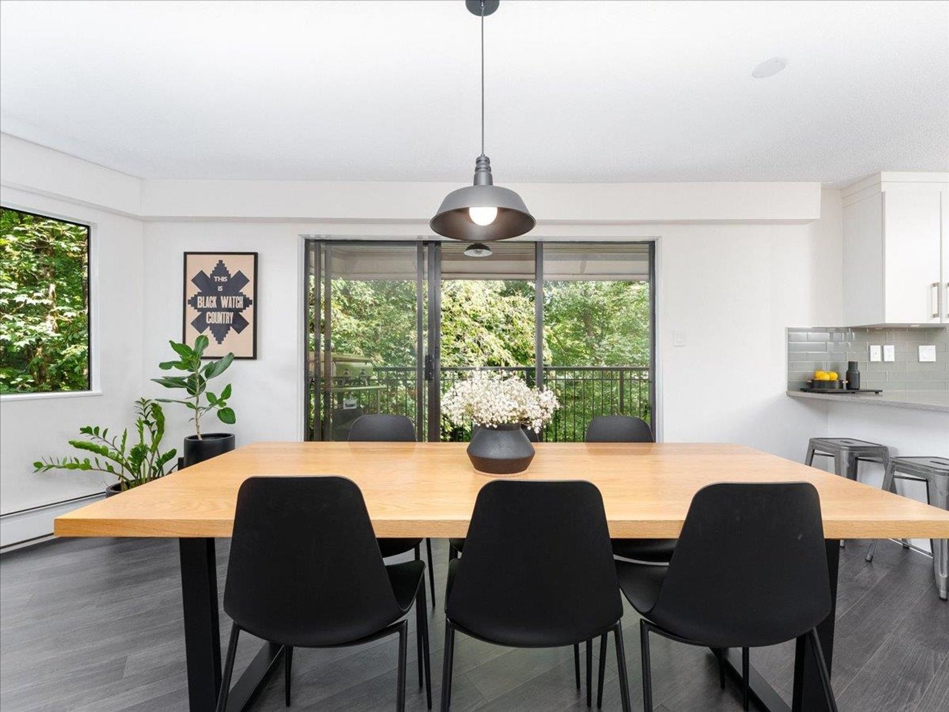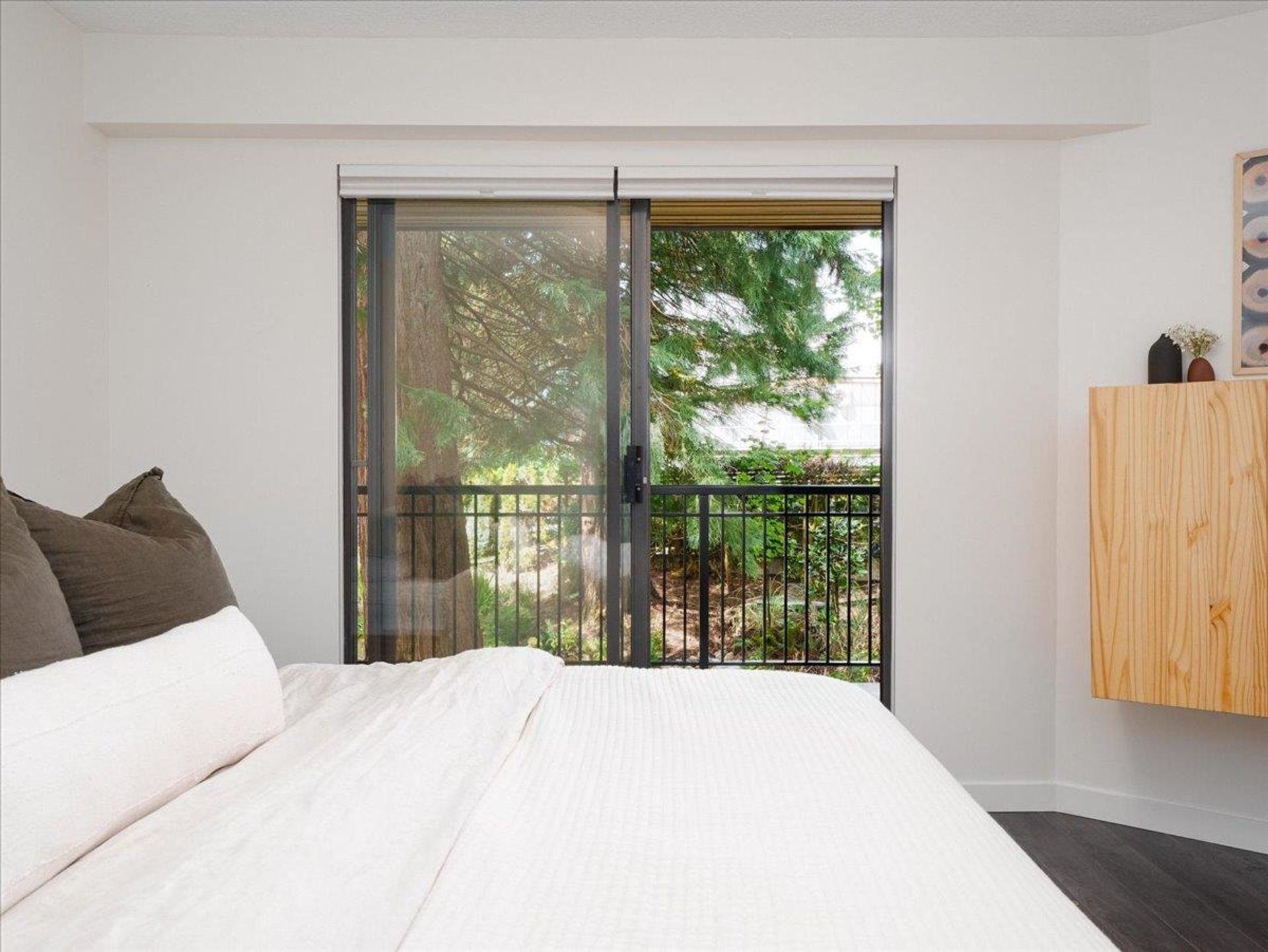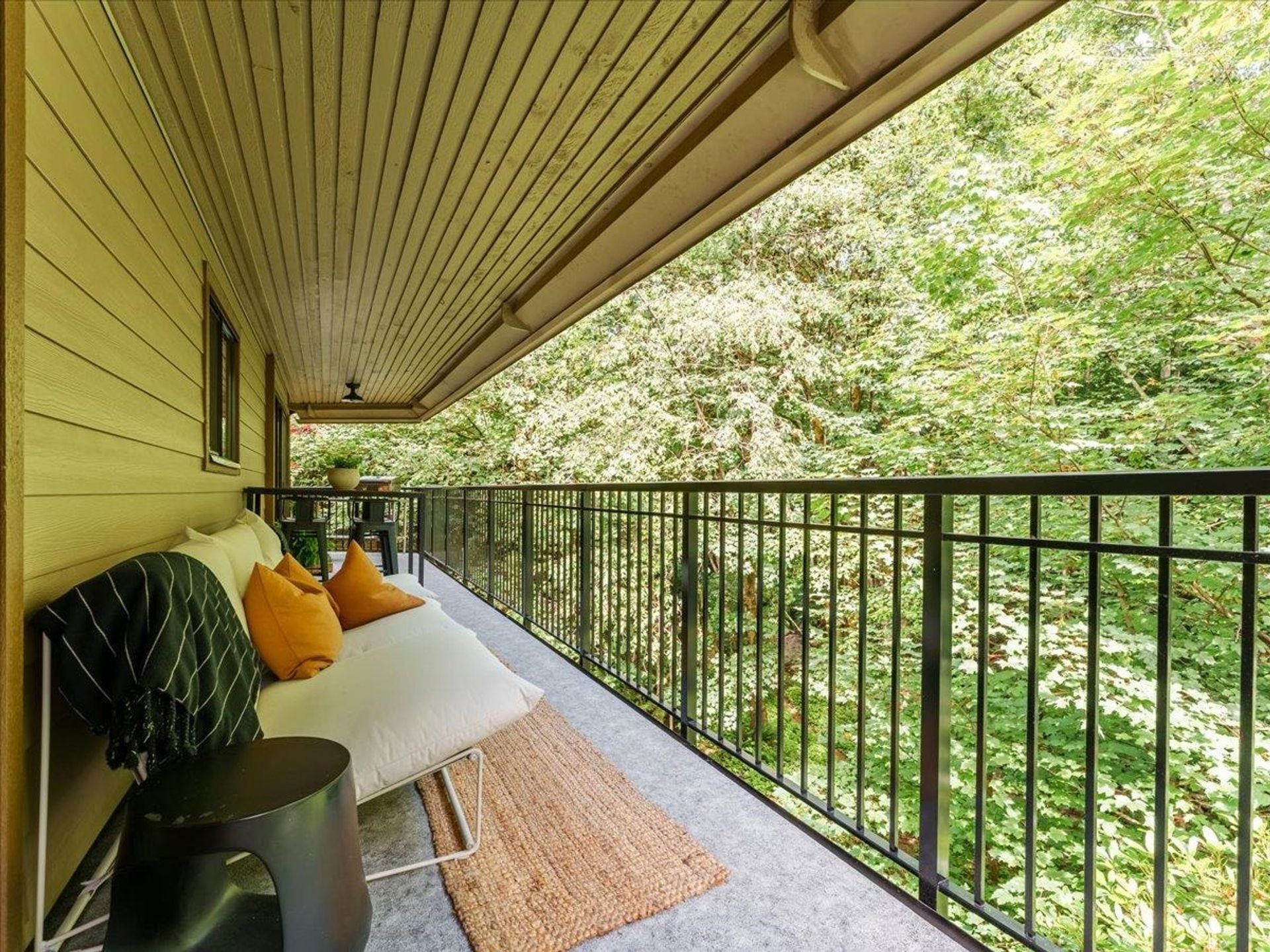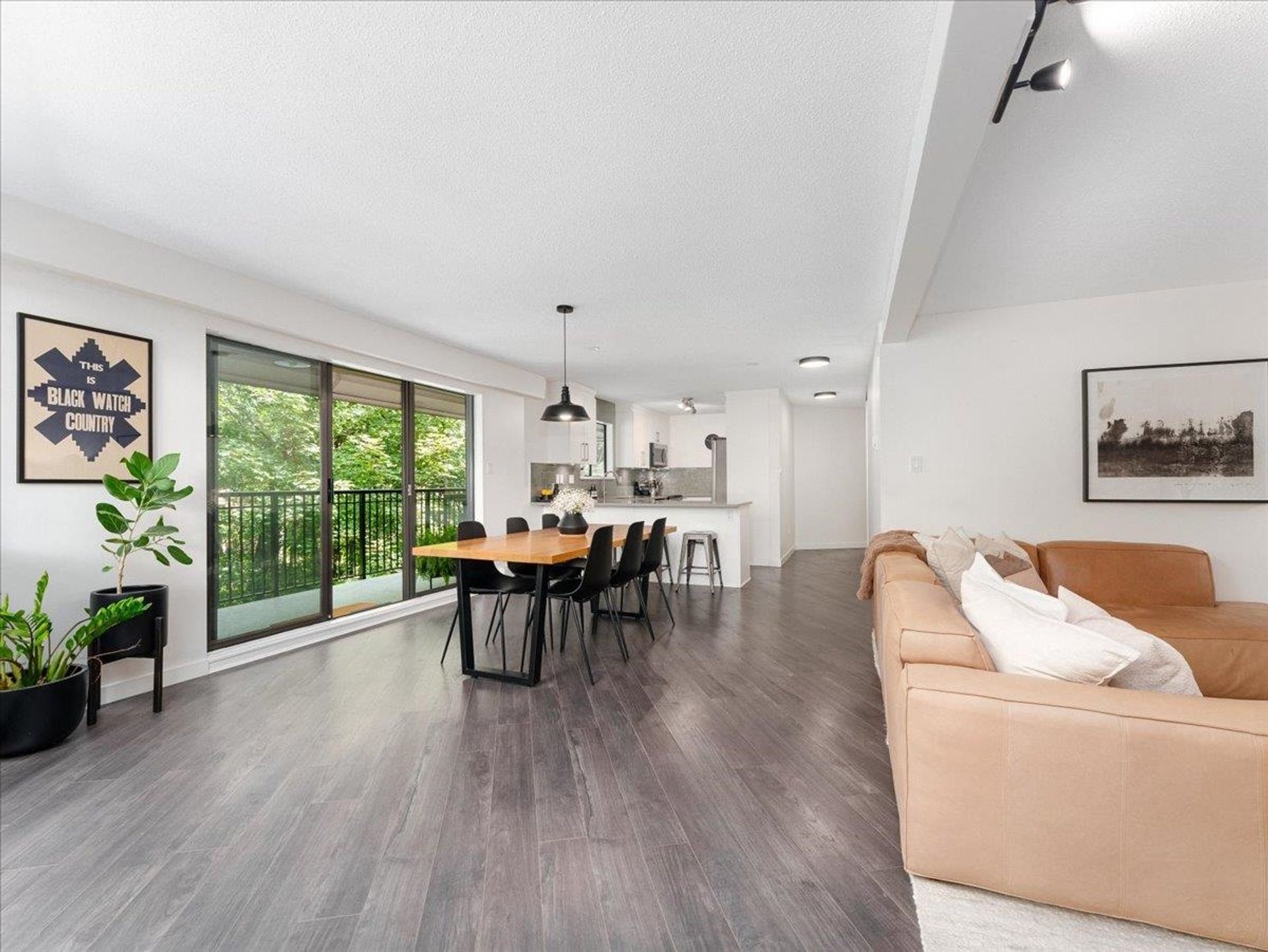 MAIN FLOOR DETACHED HOME LIVING IN A CONDO! This beautifully RENOVATED N/W CORNER 2-Bed, 2-Full Bath & Den unit is tucked away in a quiet cul-de-sac, offering privacy & serene views of Hastings Creek. 1,328 sq.ft of open-concept living space featuring generous room sizes. Renovated & Move-in ready, the home boasts high-quality upgrades; wide-plank laminate flooring, Euroline kitchen cabinetry, Caesarstone countertops, stainless steel appliances, modern lighting, & custom built-in closets. Both bathrooms have been tastefully updated. Surrounded by windows, and a 41' x 7' balcony, this SPACIOUS corner suite provides natural light and a peaceful connection to nature. Well-managed strata with extensive updates, and Steps to Lynn Valley Mall, Transit and Amenities. Open Sat/Sun Sept 6/7 2-4pm