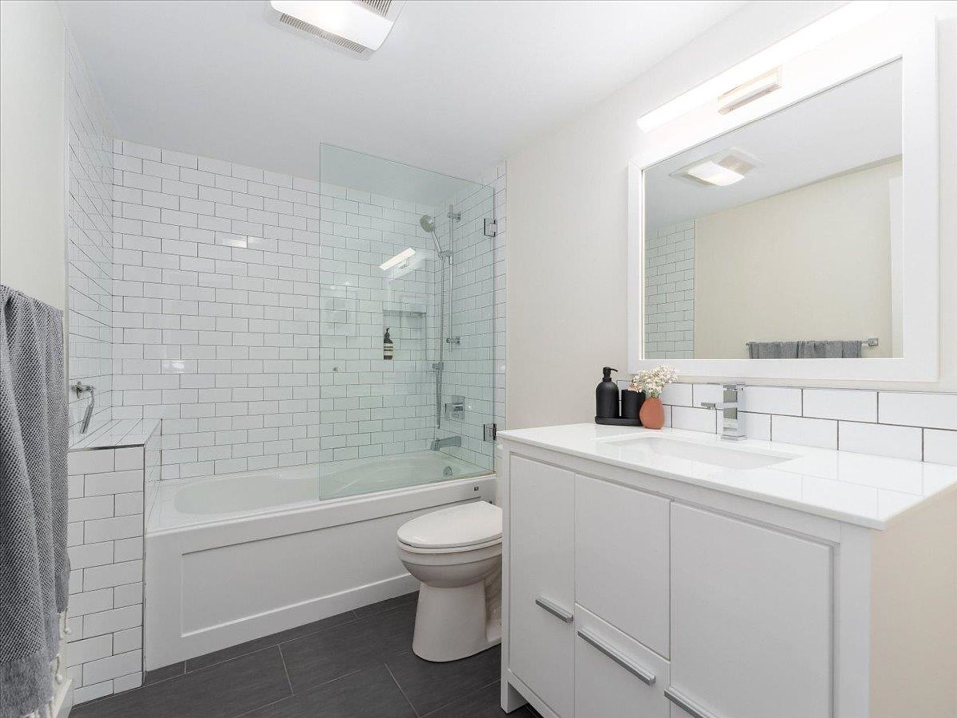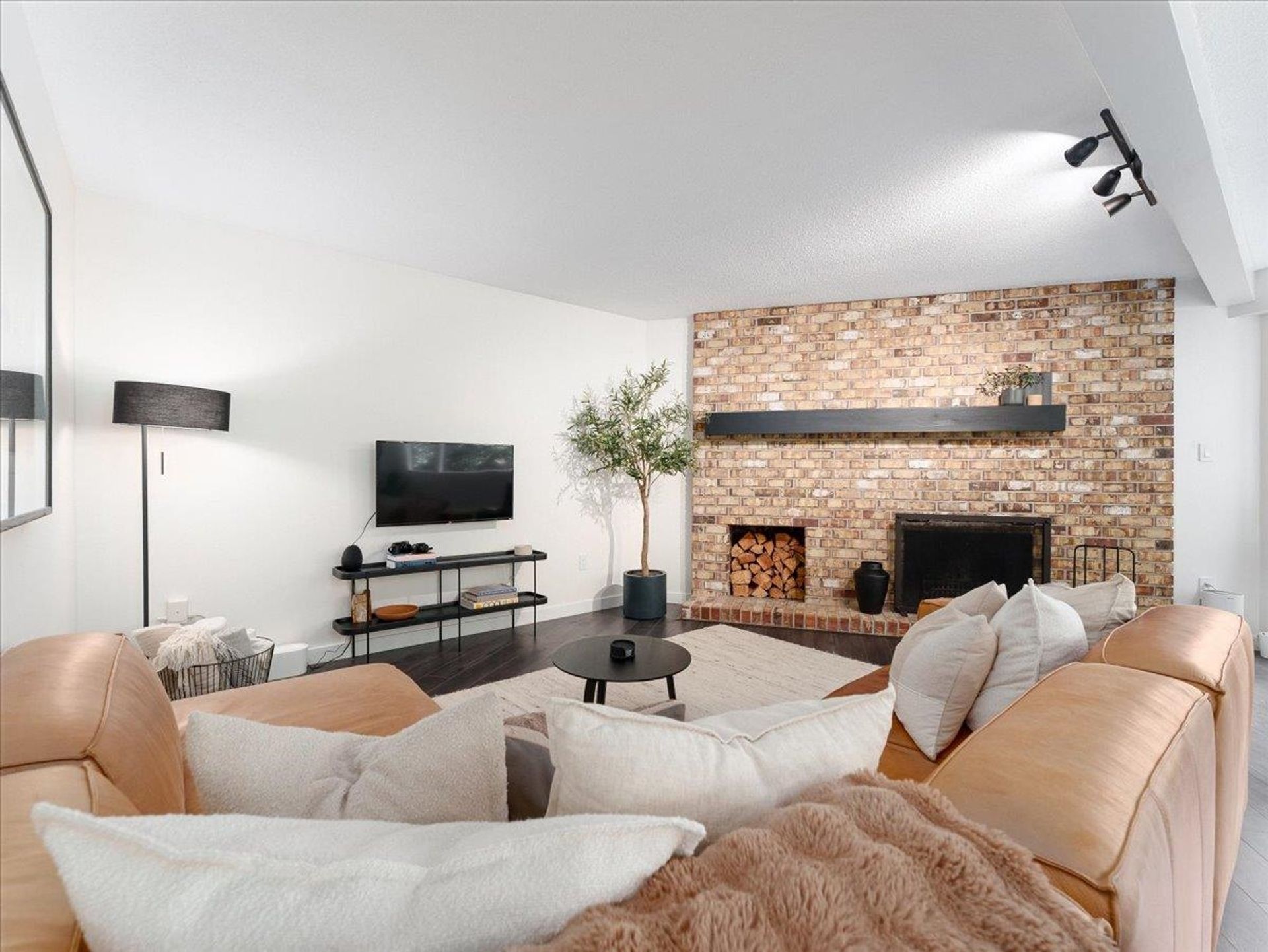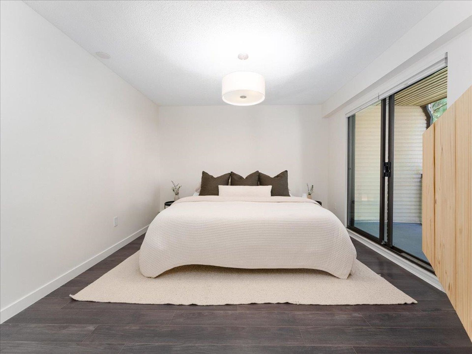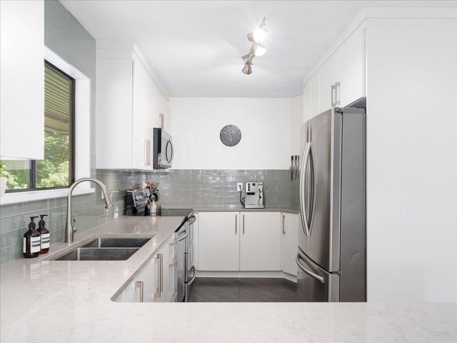 MAIN FLOOR DETACHED HOME LIVING IN A CONDO! This beautifully RENOVATED N/W CORNER 2-Bed, 2-Full Bath & Den unit is tucked away in a quiet cul-de-sac, offering privacy & serene views of Hastings Creek. 1,328 sq.ft of open-concept living space featuring generous room sizes. Renovated & Move-in ready, the home boasts high-quality upgrades; wide-plank laminate flooring, Euroline kitchen cabinetry, Caesarstone countertops, stainless steel appliances, modern lighting, & custom built-in closets. Both bathrooms have been tastefully updated. Surrounded by windows, and a 41' x 7' balcony, this SPACIOUS corner suite provides natural light and a peaceful connection to nature. Well-managed strata with extensive updates, and Steps to Lynn Valley Mall, Transit and Amenities. Open Sat/Sun Sept 6/7 2-4pm