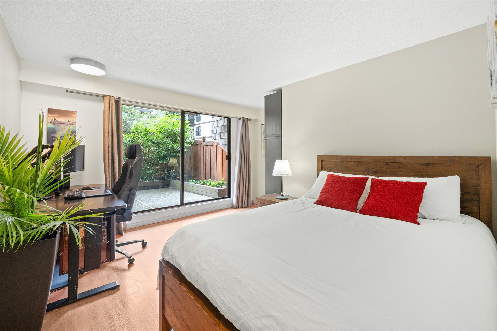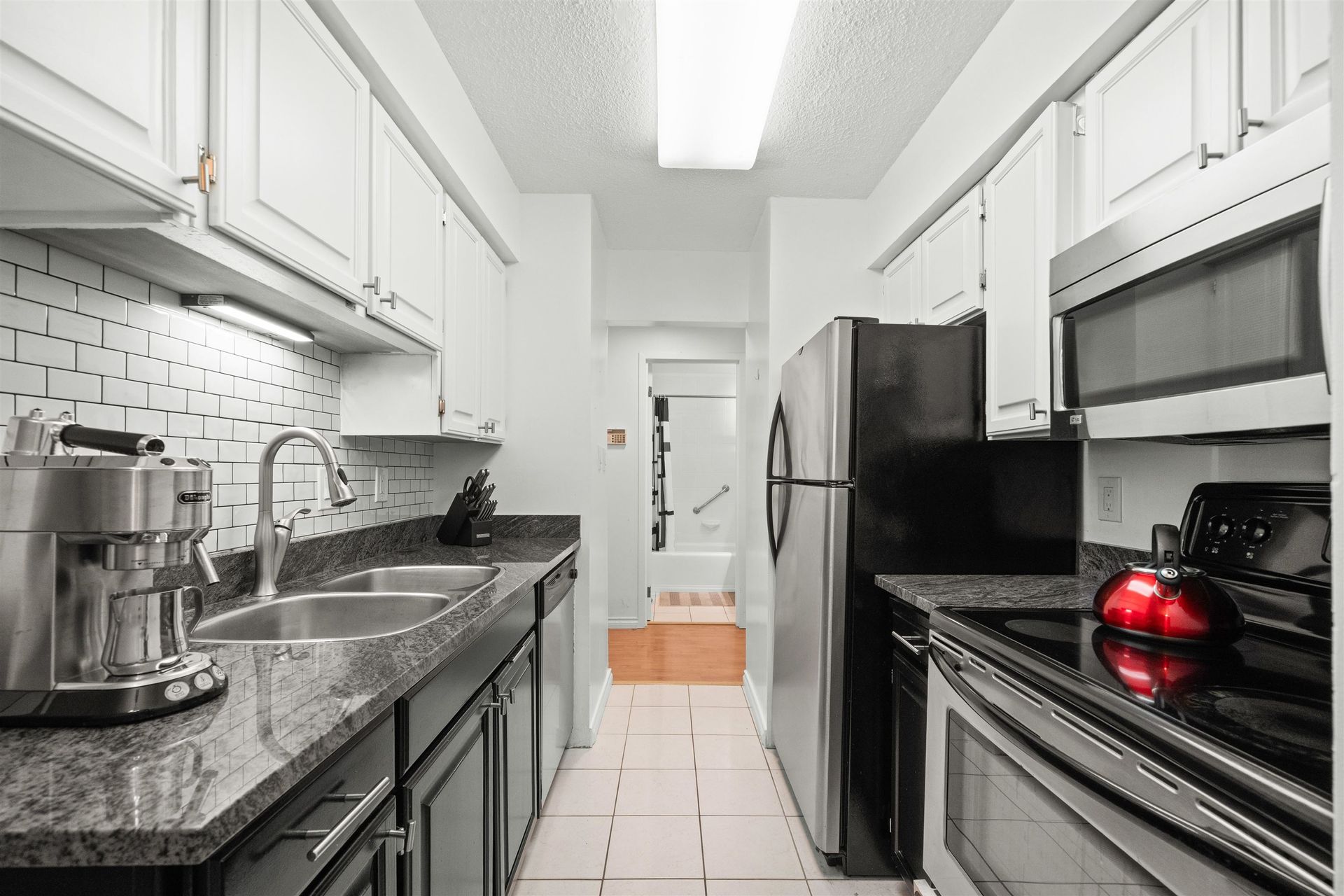 Beautifully UPDATED GROUND FLOOR 1 Bedroom unit with almost 300sqft of private South-Facing Outdoor patio space. Bight Suite w/ lots of Large South Facing Windows bringing in natural light. Updated kitchen w/modern cabinets, granite counters, S/S appliances & Subway tile backsplash. Parquet hardwood flooring in living/dining room, gas fireplace, & sliding door to your outdoor private oasis, great for entertaining and gardening. Updated Bathroom with newer tile, vanity, tub fitter and toilet. Prime Uptown location, steps to Moody Park Arena, Massey Theatre, NWSS, Transit, shops, banks, restaurants and more. Well-Maintained building, fence 2022, paint 2015, roof 2010. 1 parking, 1 Storage, Laundry on every floor, and Hot water and Heat included in fees. Unfortunately, No dogs allowed.