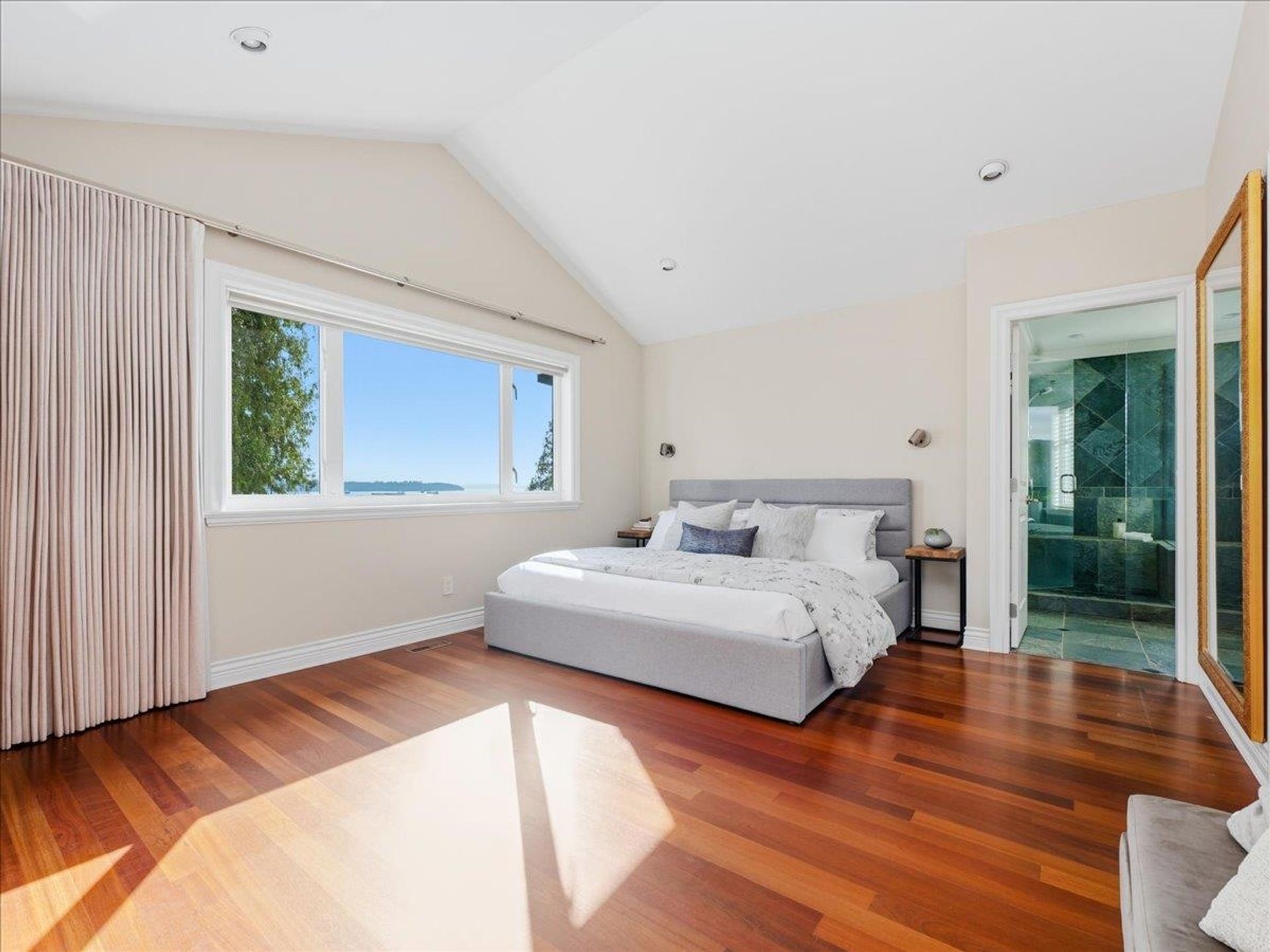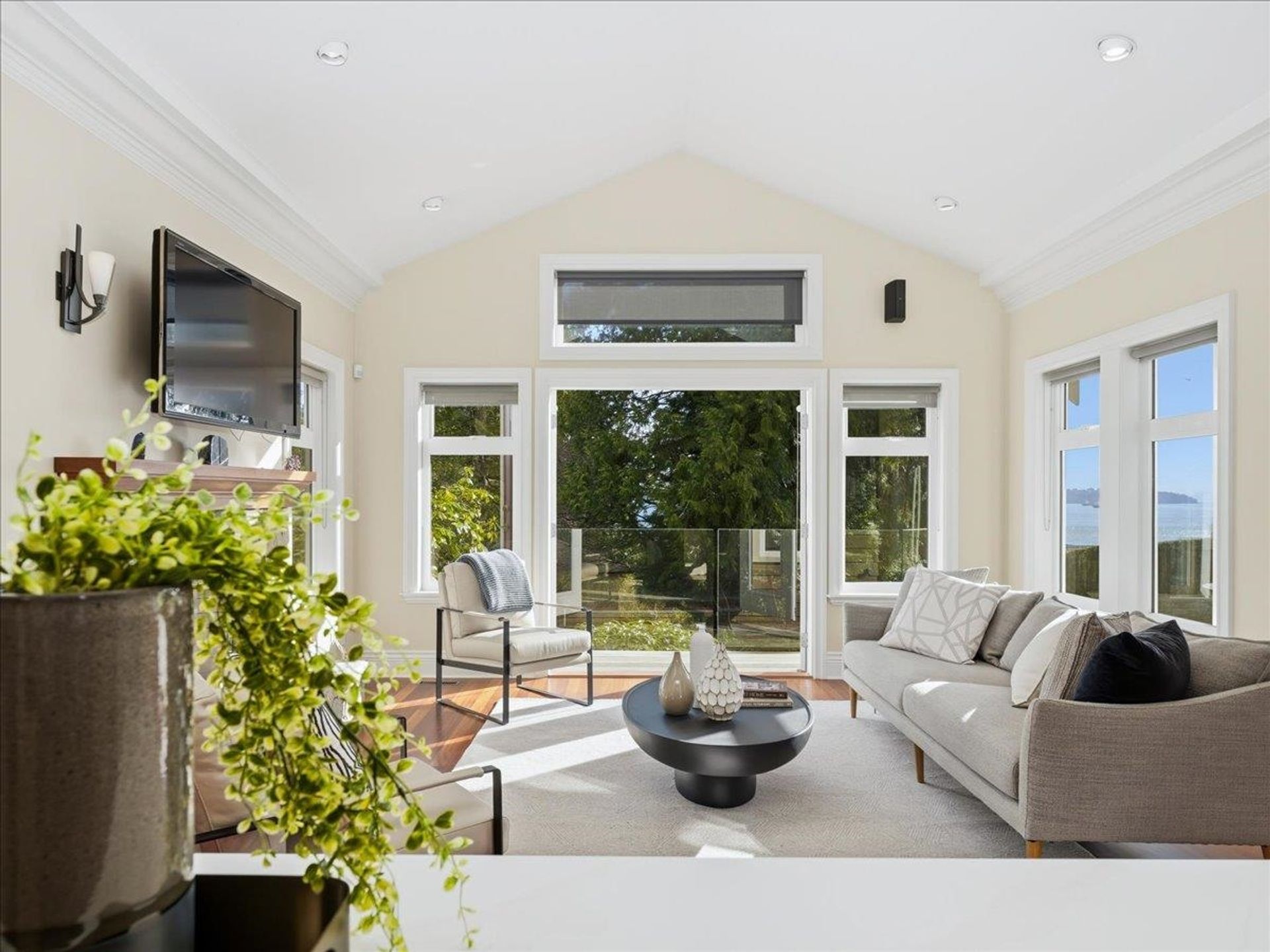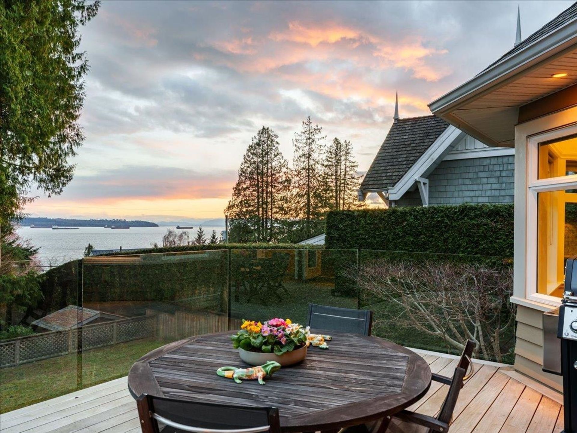 Impressive ocean views from two levels highlight this impeccably maintained home, perched high on a quiet street with sunrises over Mt. Baker and sunsets toward Vancouver Island. Inside, hardwood floors, crown molding, vaulted ceilings, and custom millwork create timeless appeal. The main level offers an elegant home office, and bright open-concept living and dining area with a chef’s kitchen featuring a Viking gas Range, Electric Oven and large island. Multiple French doors open to a spacious deck ideal for entertaining. Upstairs, the primary suite enjoys stunning views, a walk-in closet, and a 5-piece ensuite. The lower level includes a rec room, bedroom, steam shower, and large storage room ideal for a future media room. Just minutes to Dundarave Village, the Seawall, and Beach House.