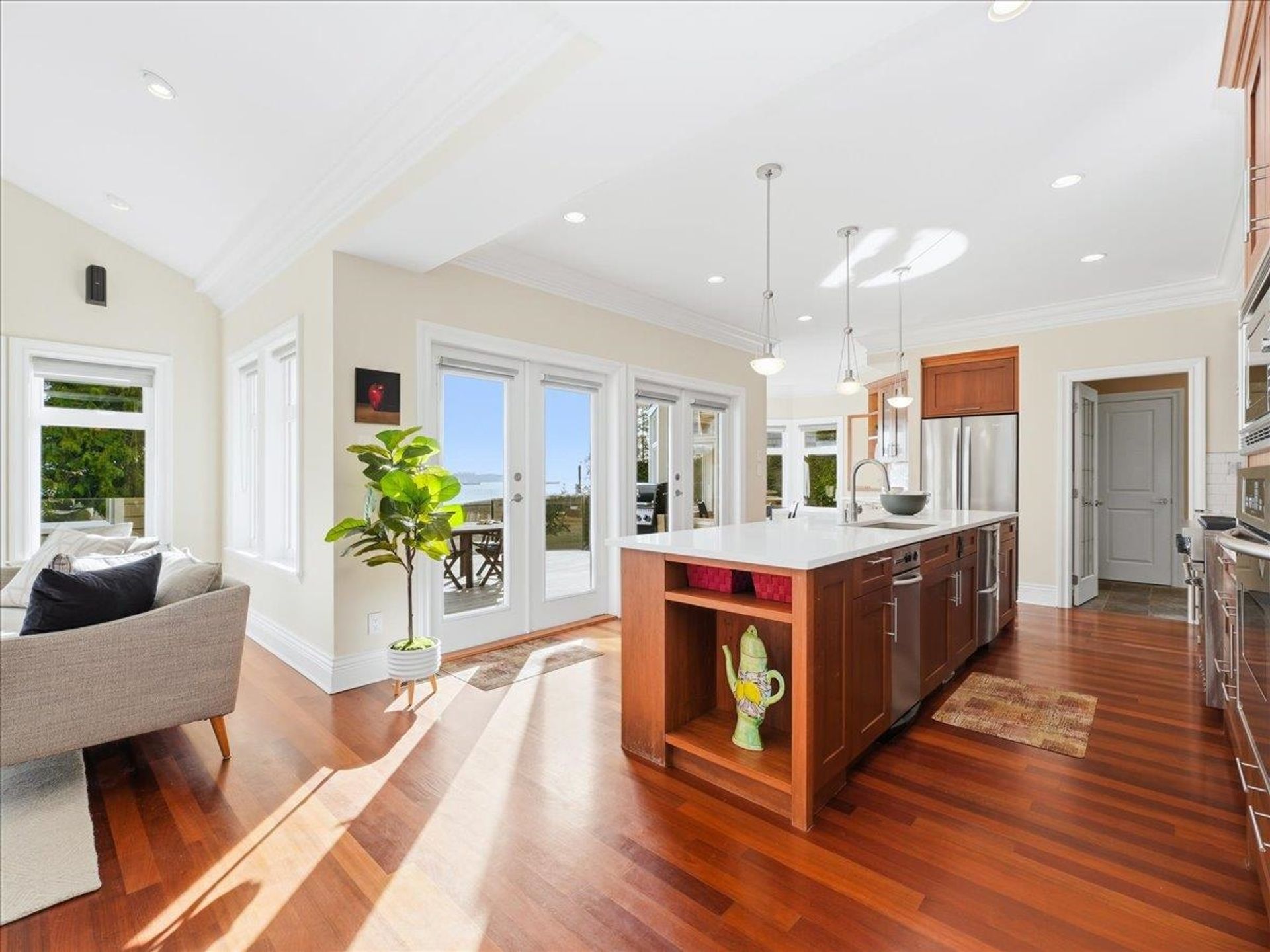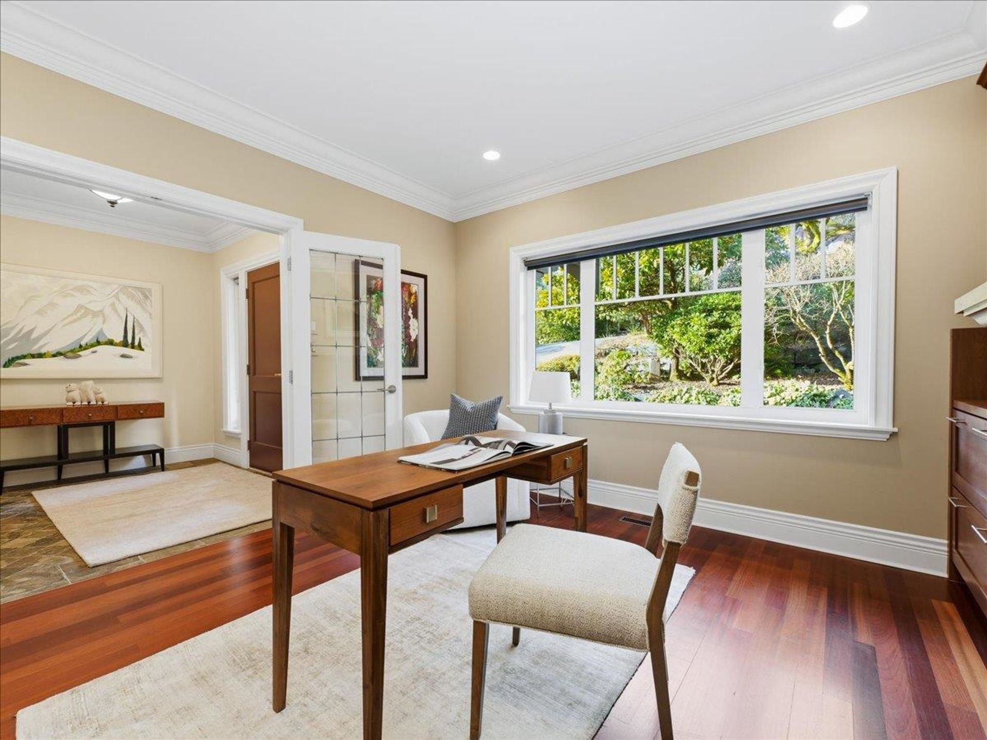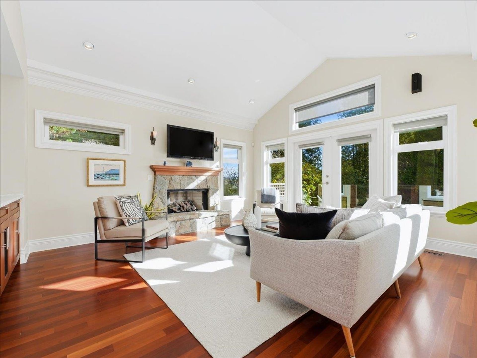 Impressive ocean views from two levels highlight this impeccably maintained home, perched high on a quiet street with sunrises over Mt. Baker and sunsets toward Vancouver Island. Inside, hardwood floors, crown molding, vaulted ceilings, and custom millwork create timeless appeal. The main level offers an elegant home office, and bright open-concept living and dining area with a chef’s kitchen featuring a Viking gas Range, Electric Oven and large island. Multiple French doors open to a spacious deck ideal for entertaining. Upstairs, the primary suite enjoys stunning views, a walk-in closet, and a 5-piece ensuite. The lower level includes a rec room, bedroom, steam shower, and large storage room ideal for a future media room. Just minutes to Dundarave Village, the Seawall, and Beach House.