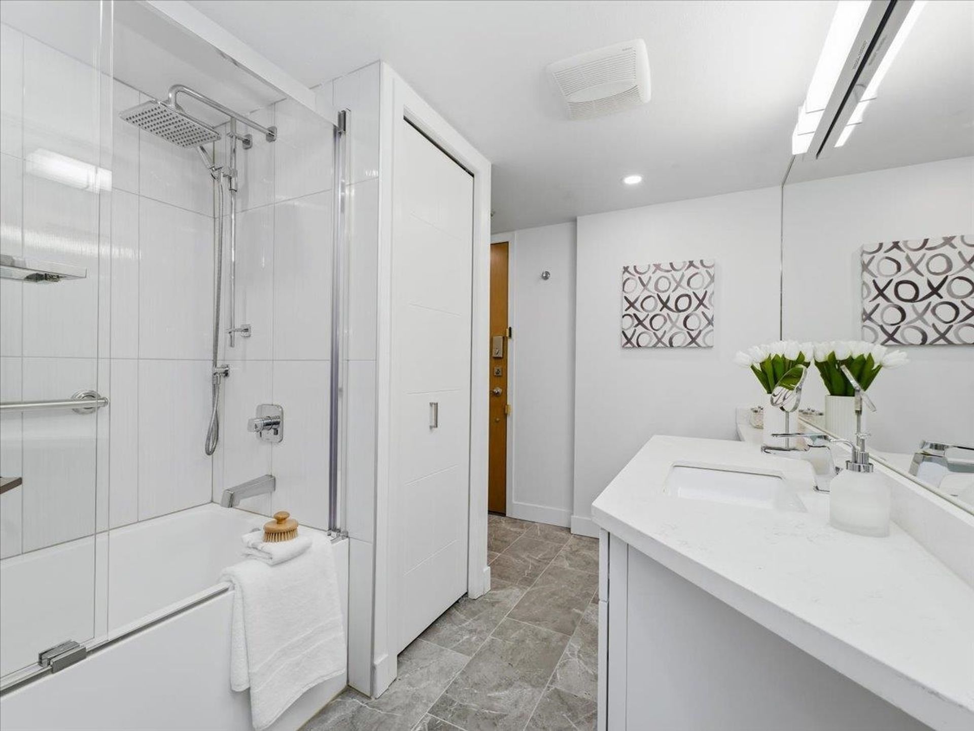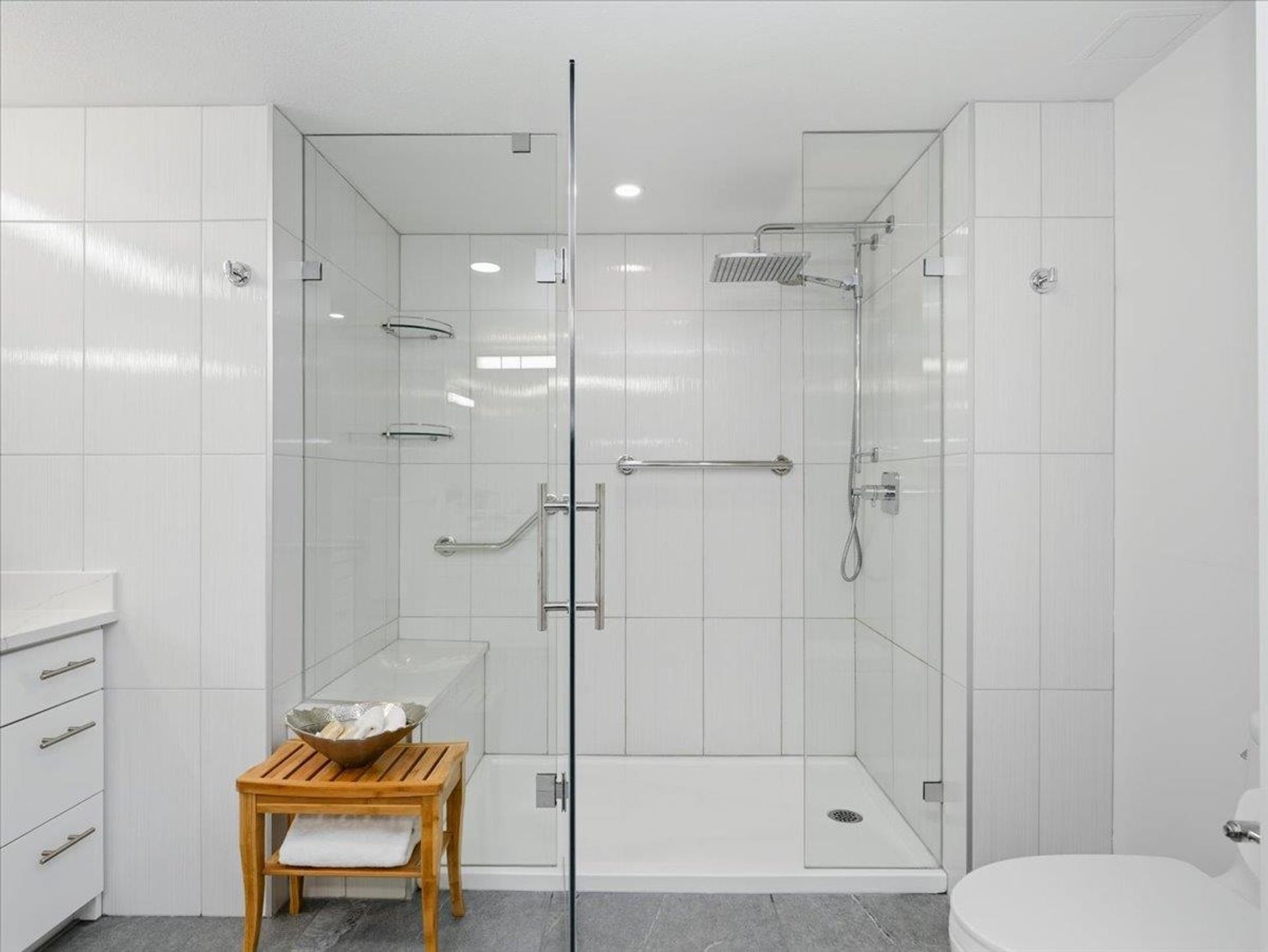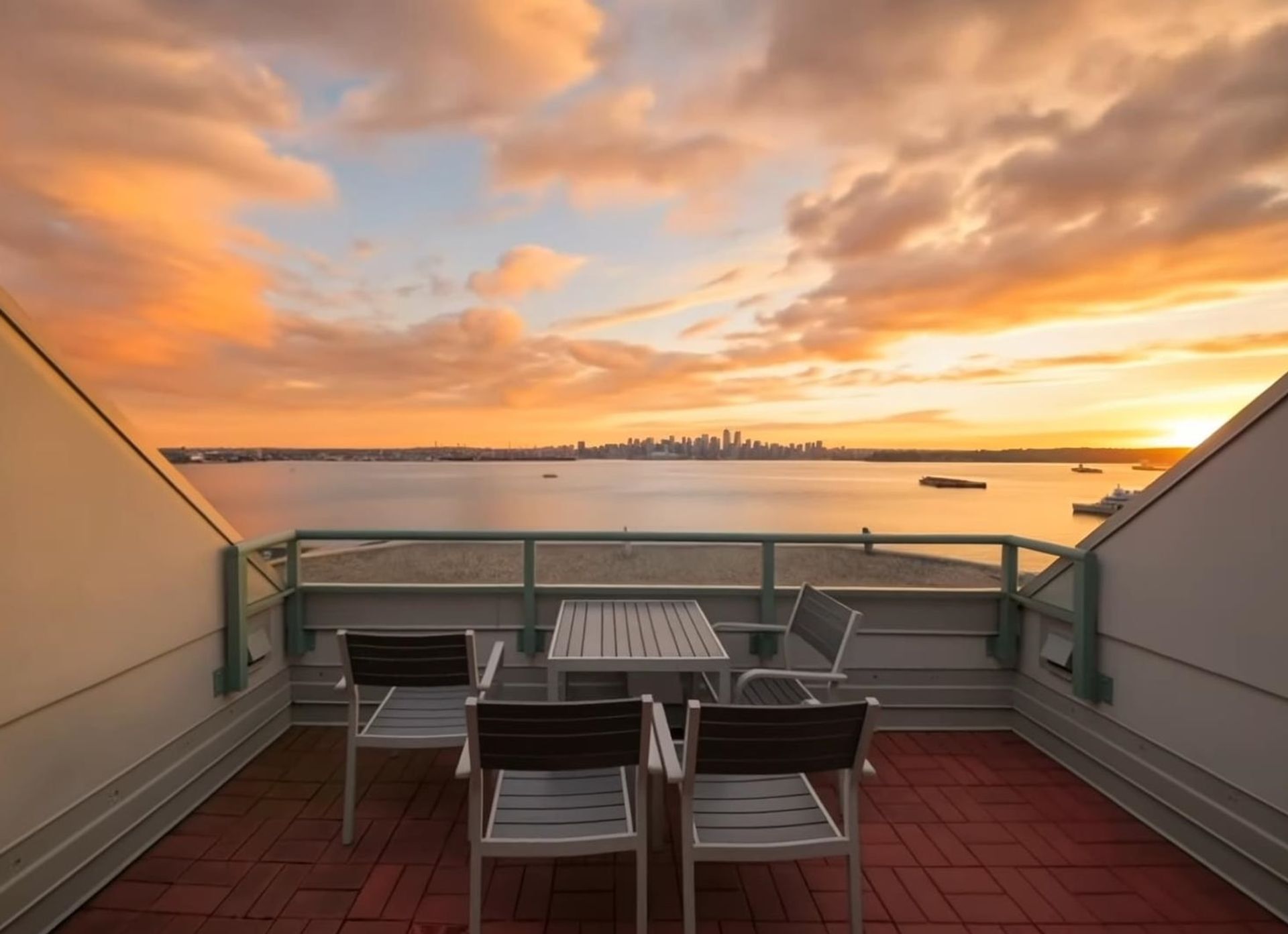 Spacious 3-bedroom, 3-bathroom, Office & Den OCEANVIEW Residence set over 2 levels and spans over 1900 sq ft and feels like a house. Substantially renovated featuring a bright open-concept living area designed to showcase the impressive outlook. The upper level offers three oversized bedrooms,(2 with walk-in closets) including a stunning primary suite with spa-inspired ensuite. The main level boasts a beautifully updated kitchen, premium appliances, cozy new fireplace, updated flooring, home office and modern renovated bathrooms. Enjoy SPECTACULAR SUNSETS from either balcony or the ROOFTOP Patio. Ample building amenities including bike room, sauna, gym, patio, library and literally front door access to the Seabus and Vibrant LoLo. Includes 2 parking and an XL storage.